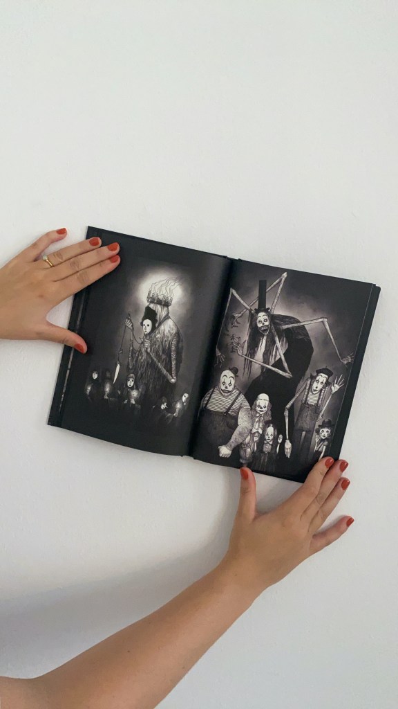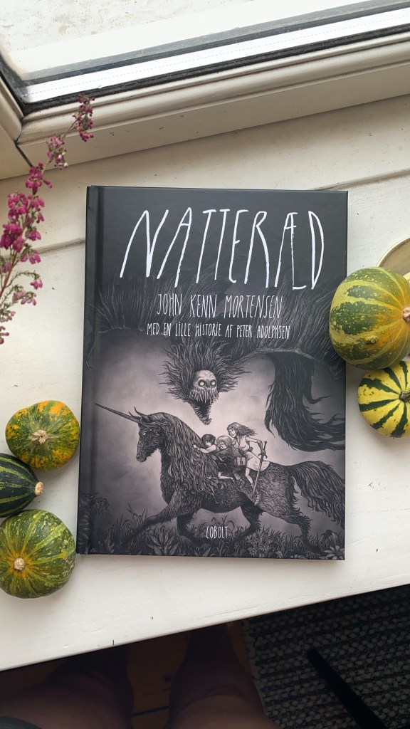 Jeg viste bogen til nogle af mine veninder da de kom på besøg, og de smed den fra sig, næsten som om de havde brændt sig på den. Ja, hvis man ikke er til gys, så bryder man sig nok heller ikke så meget om Natteræd. Jeg synes til gengæld den var cool. Jeg kan ikke rigtig give den stjerner, da den ikke indeholder en læsbar historie som sådan, men den har et klart tema, og mulighed for tolkning af illustrationerne og deres sammenhæng og man kan nemt forestille sig, at det kan skræmme de mindste. Men jeg skal ikke lyde kæphøj- nogle af illustrationerne passede ubehageligt godt på de ting, jeg selv har været bange for som lille.