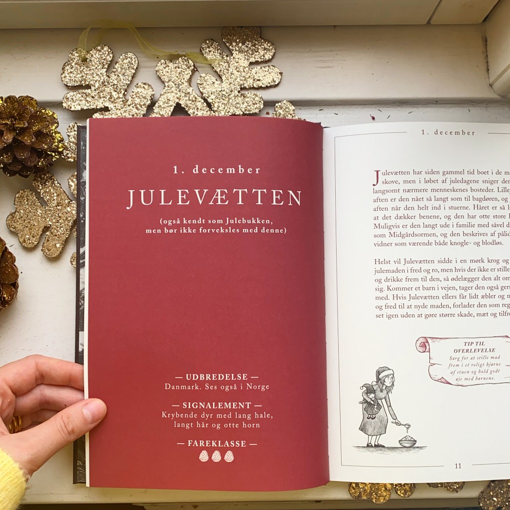Bogens koncept er meget nyt og forfriskende. Jeg har ikke selv før læst en julekalenderbog med monstre og gys i fokus over julehygge. Især efter lige at have færdiggjort kalenderen Bellas (h)jul, synes jeg det var sjovt at give mig i kast med en helt anden slags kalenderbog. Monstrene var både genkendelige, såvel som nye, og vi kommer i bogen igennem alt fra nisser, julekatten og (en slags) julemand og monstre som ‘Olentzero’, ‘Asgårdsreien’ og ‘Perchta’. Forfatterne har virkelig været kreative, i deres udarbejdelse af monstrene – både i illustrationerne, beskrivelserne og lige fra hvor i verden man finder dem, til hvor farlige de er på en fareskala fra 1-5 krankogler.