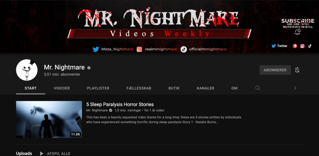 Klik her, for at komme til Mr. Nightmares YouTube side 👣