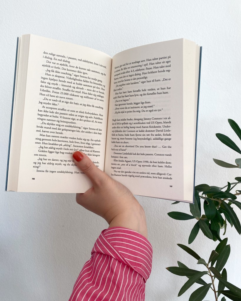 Jeg lyttede faktisk til bogen som lydbog hos Mofibo, og det kan jeg varmt varmt varmt anbefale! Det giver en lækker dynamik til oplæsningen med de små pauser ind imellem, klippene til lydfilerne fra Anders selv der taler og kommenterer på Serenas tenniskamp, og klips til interviews med eksperter inden for racisme og tennis. I min optik, burde alle lydbøger gerne laves ligeså lækkert – det gør det meget appetitligt at lytte til, fordi den på den måde bliver inddelt i mindre bidder.