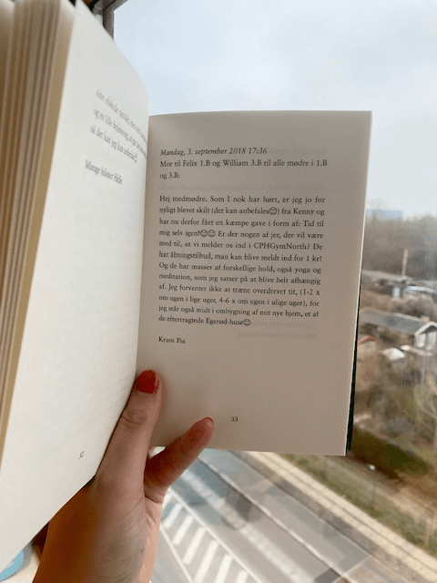 Her får vi virkelig et bud på indskolingsforældres digitale kommunikation – både med hinanden og personalet på deres børns skole (en privatskole i Kongernes Nordsjælland). Hvis dét ikke sætter tonen for en mulig humoristisk kontekst, så er der ikke noget der gør, og Rikke leverer bare varen! Herregud, hvor har jeg bare ikke lyst til at få børn nu – og på samme tid, er der da 1 eller 10 menensker fra den her bog, jeg gerne lige ville tage en diskussion med. Puha, hvor er folk her nogle selvhøjtidelige, egoistiske og selv-berettigede hverdags-krigere, der diskuterer de mindste lorte-ting, og kører det op i et niveau, der er utilgiveligt pinligt. Men hvor er det fed læsning 😉