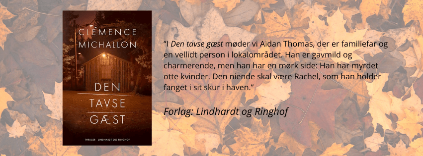 Forlaget skriver: “I Den tavse gæst møder vi Aidan Thomas, der er familiefar og en vellidt person i lokalområdet. Han er gavmild og charmerende, men han har en mørk side: Han har myrdet otte kvinder. Den niende skal være Rachel, som han holder fanget i sit skur i haven.”