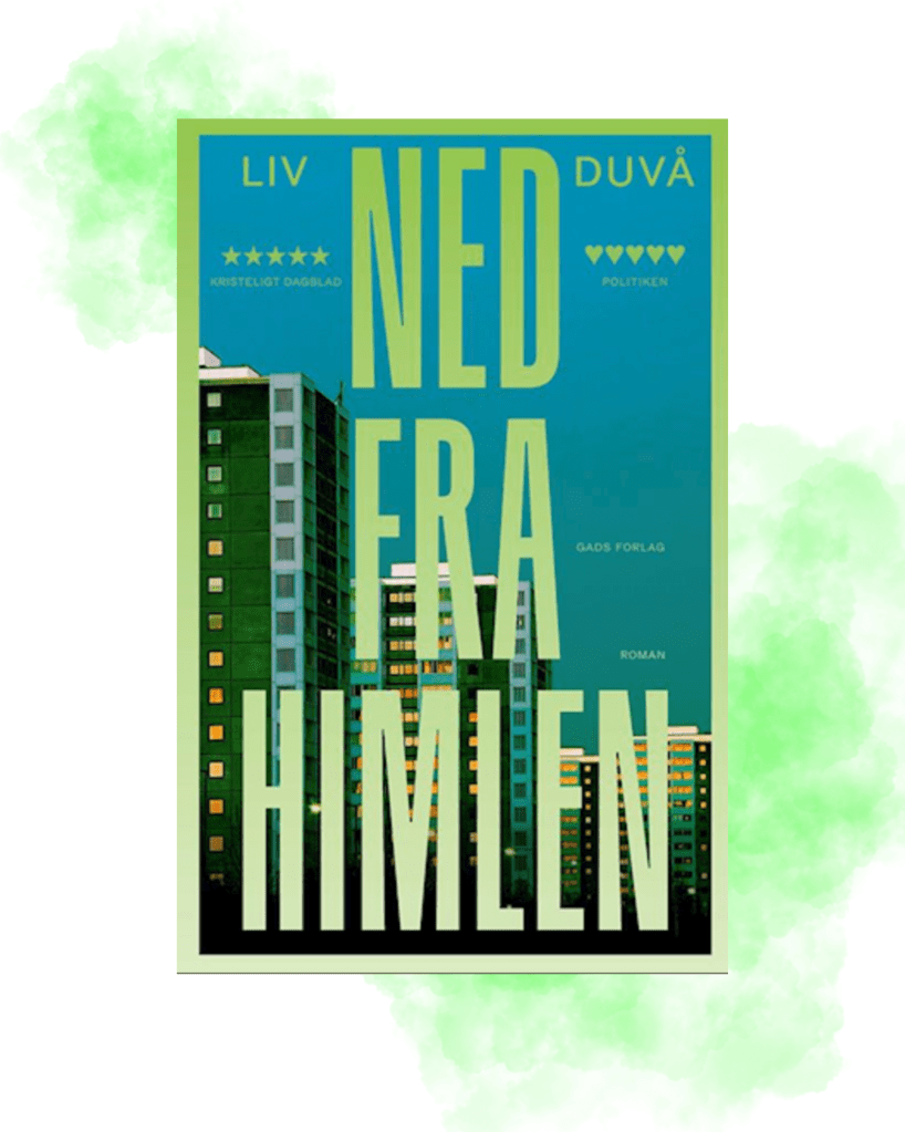 “Ned fra himlen er en fortælling om en ung mor på flugt og en stor roman om Velfærdsdanmark (…) Ned fra himlen er en roman om alt det, vi arver fra tidligere generationer, om ophobede giftstoffer og om de fortællinger, vi bærer med os. Ikoniske bygninger, der styrter i grus, forbindelser, vi ikke kan flygte fra.” (text fra saxo.dk)