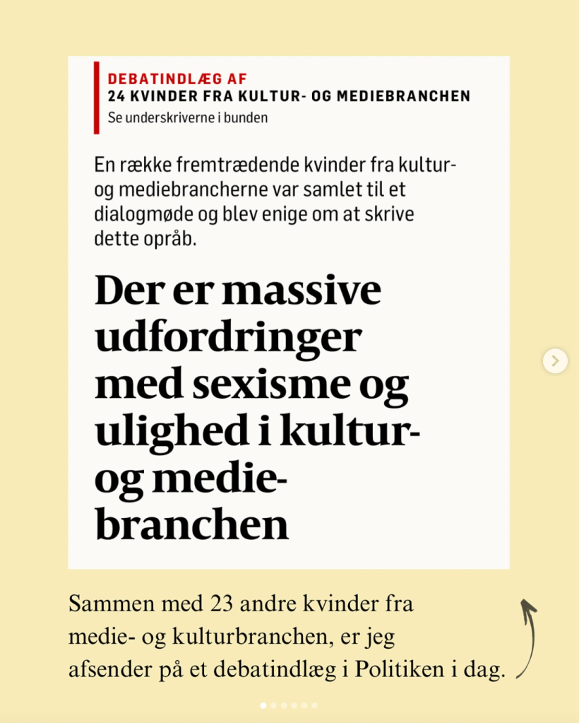 Nogle mennesker må gå forrest i kampen om ligestilling. Og Caroline, der til dagligt driver Instagramprofilen @sostertilsoster, er en af de digitale stemmer i Danmark, der absolut går forrest. Med skarpe staistikker og prangende farver, formidler og forholder hun sig til alt fra forskning og aktuelle nyheder til litteratur og testimonials, om køn og ligestilling. Jeg er så glad og beæret over at få lov til at lave dette portræt af hende, og i dag at kunne dele hendes profil og hårde arbejde omkring formidling af ligestilling med endnu flere menensker fra det danske land. Lær Caroline og hendes indsats bedre at kende i artiklen her. God læselyst 💛